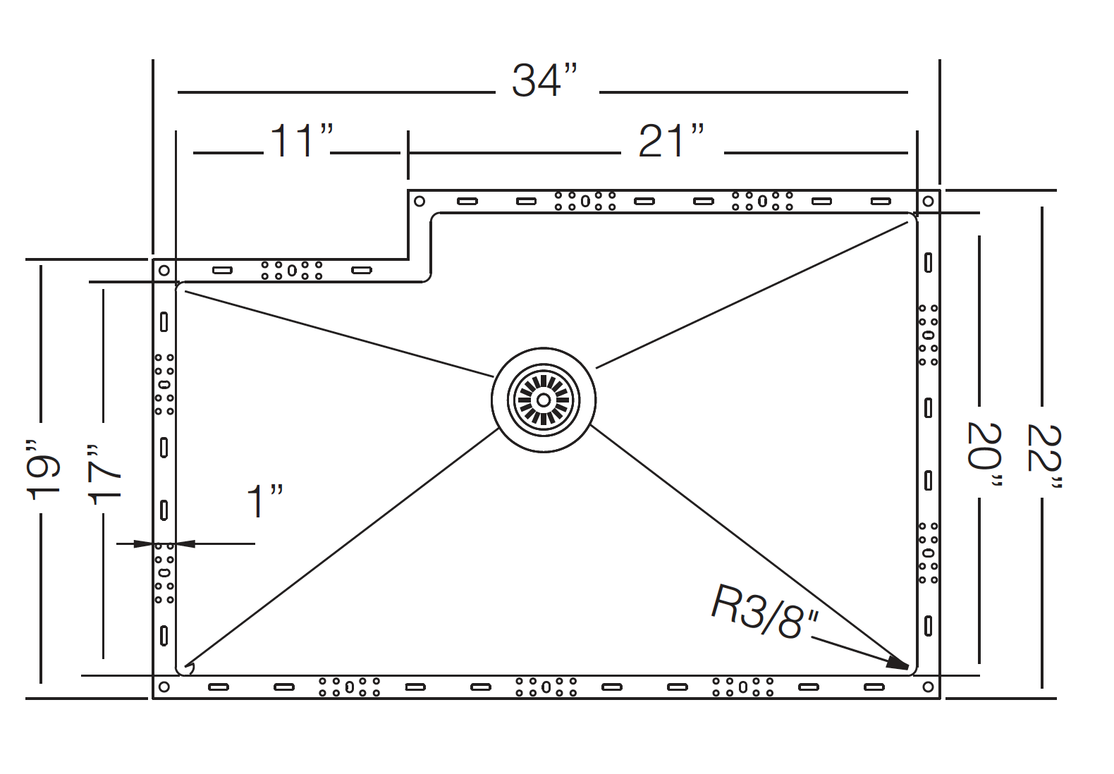 BONN R - TZ XR815 R 34" Single Offset Bowl Reverse Sink Flush-mount